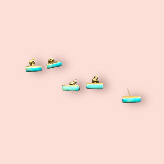 Turquoise Genuine Gemstone Bar 14k Gold Plate Earrings