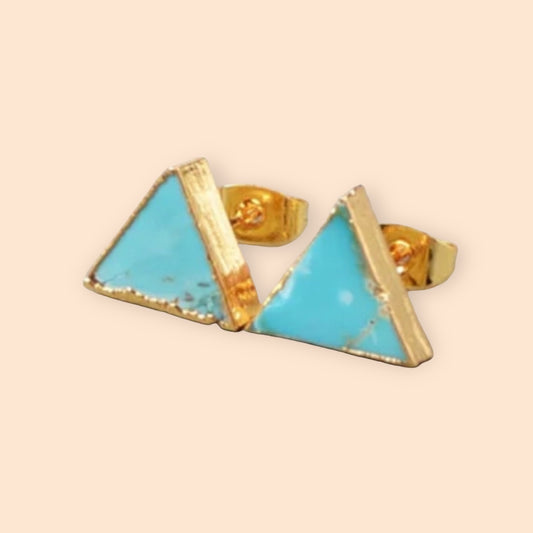 Turquoise Genuine Gemstone Triangle 14k Gold Plate Earrings